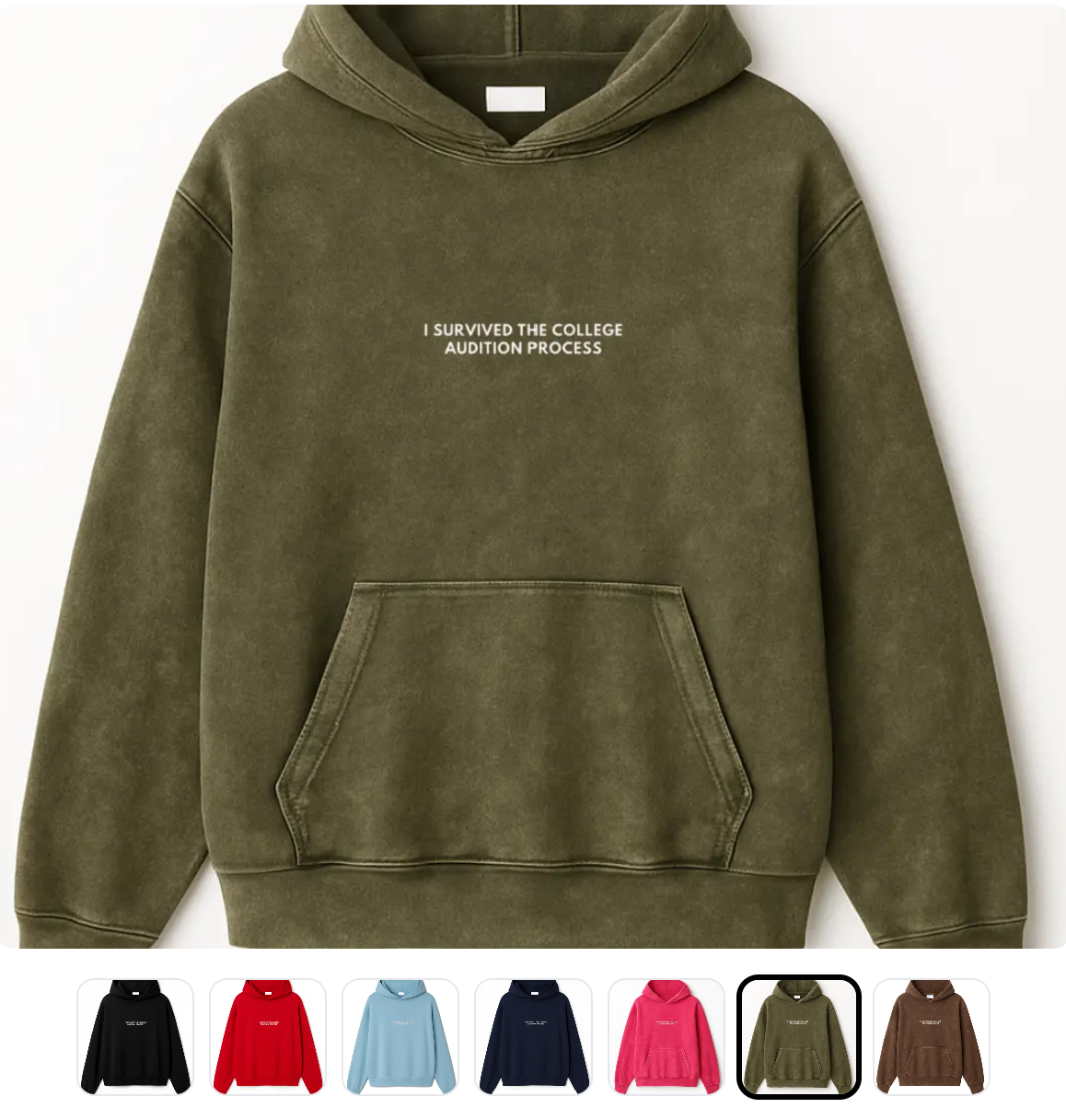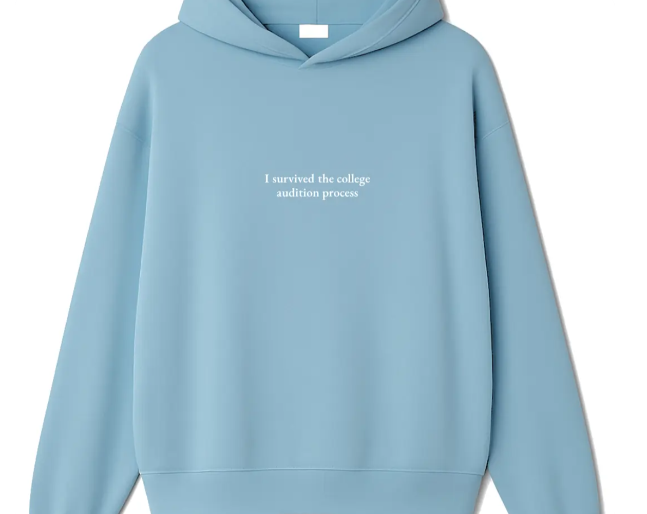 "I survived the college audition process" sweatshirt: The college audition process is not for the faint of heart! Whether you’re a student, parent, teacher, or sibling — YOU SURVIVED!! Now it’s time to celebrate!